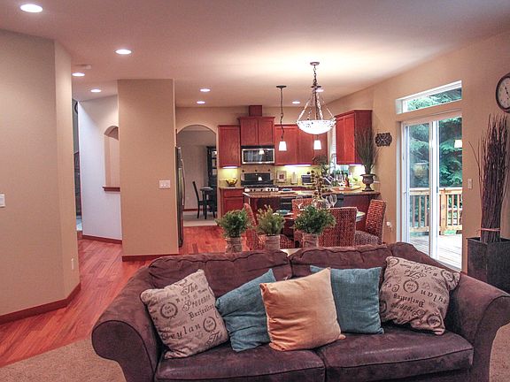 This beautiful 4 bdr home on over half an acre will not disappoint! Enjoy the privacy as a wooded greenbelt surrounds home. Home boasts a perfectly designed kitchen & HUGE walk-in pantry. Refinished cherry Brazilian wood floors, freshly painted inside, spacious 3-car garage & oversized deck perfect for entertaining. Master has soaking tub, dbl vanity, & lrg walk-in closet. Bonus/rec room upstairs perfect for a kids play room or a quiet area to relax. Less than 5 mins from I-5.