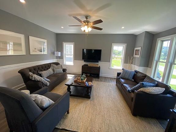 Built in 2020 by Burke Builders, this like new home is an amazing opportunity a very short distance from the beach, local farms and winery. With a spacious front porch, and a beautiful rear yard featuring an inground pool, this summertime oasis awaits! Level one features a formal living room, a dining area and an open concept kitchen with center island as well as sliders that lead to the rear deck. Additionally there is a large master suite with a shiplap feature wall, an en-suite bathroom with tiled wall surround, as well as a walk in closet. Level 2 offers a junior suite with private bath, two guest rooms, one of which offering direct access to the hall bath. Engineered hardwood flows throughout the home. The beautiful in-ground gunite pool is bordered by a paver patio to soak in the sun. Additionally there is an enclosed outdoor shower, fenced in rear yard, and a storage shed.