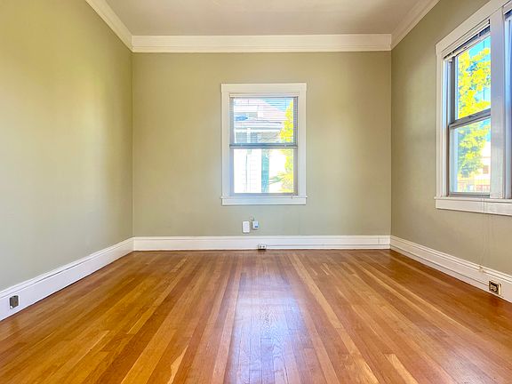 Spacious and bright upper floor 1-bedroom in beautiful 1925 fourplex. Lots of windows and sunlight. Beautiful hardwood floors, big living room, bedroom, office space, kitchen and dining nook. Ample closet space, gas heating. One-car garage space (storage) included, with off-street driveway parking. Onsite free laundry (shared). Across from Bushrod Park . Proximity to Temescal restaurants, coffee shops, College Ave. shopping. Close to Ashby and Rockridge BART stations, AC Transit (Line 12). Cat okay with pet deposit. Available February 1st. Owner pays for water and trash service, tenant pays for gas and electric, internet. Cat okay. Building and premises are non-smoking. 1-year lease, renewable or goes to month-to-month.