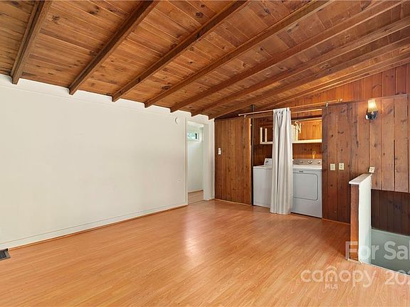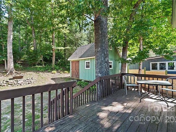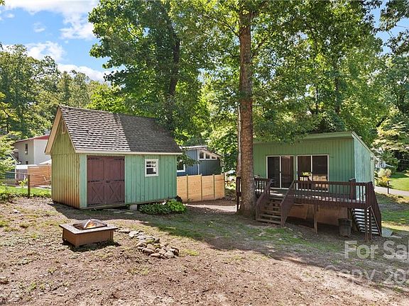 Wonderful location! Cozy cottage in Black Mountain is waiting to share the mountain adventure with you. Just a short walk along the the 4th hole of BM golf course to all the amenities of Lake Tomahawk and BM Pool and Recreation Center. Lot offers exciting expansion opportunities. Architectural plan available for review for 1000 s.f. + two-story addition including front covered porch and upper level deck. The main level has an eat-in kitchen with stone gas log fireplace, pantry, living area and full bath. Ascending the stairs to the upper level, there is a nice size bedroom with vaulted ceiling facing the front of the home. The laundry is located in the large living area with slanting wooden ceiling. The double sliding glass doors lead to a large deck. An additional room could be used as an office or bedroom. There is also a 12’x16’ storage building with loft storage or use your imagination as to what this space could be used for. Shopping and dining nearby, 20 minutes to Asheville.