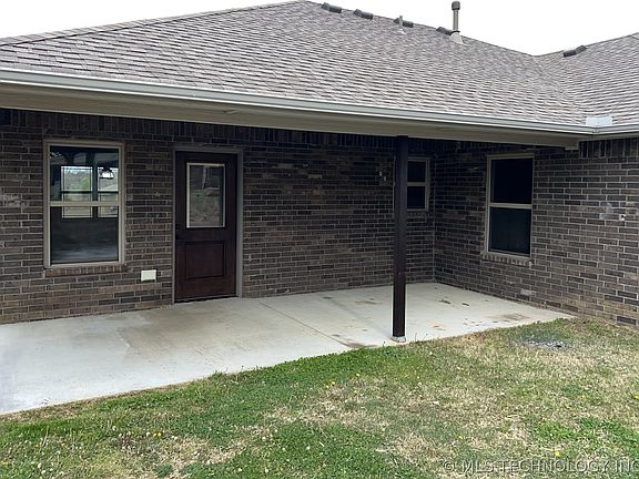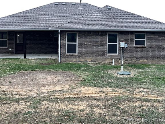 Take a look at this beautiful 3 bed, 2 bath brick home with higher end upgrades. This home has natural colors and stained wood trim to accentuate the wood doors. When you walk into the home you enter a spacious entry way with 9 ft ceilings that opens to the kitchen. The windows let in natural light to brighten the home. The kitchen has gorgeous wood cabinets, granite countertops, stainless steel appliances, and a built-in pantry. The kitchen sink has a Delta single-handle pull-down sprayer faucet. All faucets and fixtures are Delta. Kitchen opens to dining area and back door to covered porch. The bedrooms have large closets with the larger bedroom having two walk-in closets. The attic has partial flooring for extra storage and the garage door has been insulated. Lots of details have been added to this home. Perfect location within 30 miles to Stillwater and an hour to Tulsa.
