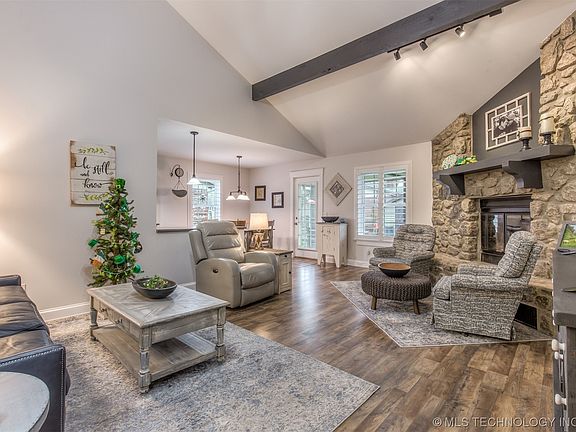 So much character packed into this home, from the moment you cross the threshold, your eyes will be drawn to the soaring ceilings accented w/stunning beams & a majestic floor to ceiling fireplace. Kitchen partially open to living room for easy entertaining of guest. Spacious bedrooms w/walk-in closets. Imagine sipping coffee on this sprawling front porch made for lazy days in the summer. Spend time creating memories in this home for years to come. This ranch style home is nestled on the edge of town w/close proximity to all major shopping, dining, and entertainment. (additional bonus features: Water Softener w/ reverse osmosis water system, new hot water heater, plantation shutters, freshly painted inside and out), simply pack your bags and move in!