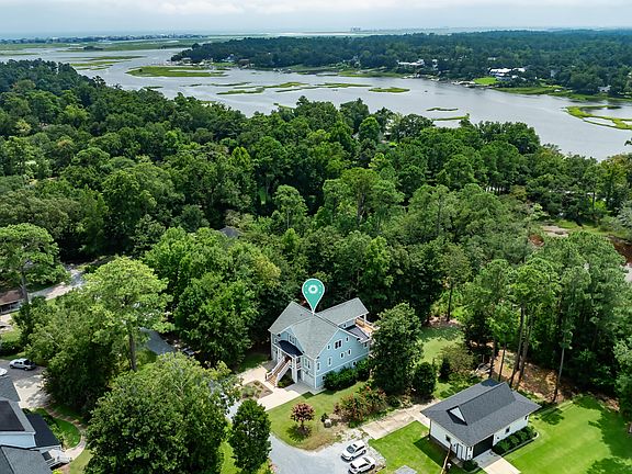 The picturesque views from the back deck include sightings of egrets, herons, and various other coastal birds and wildlife. The backyard overlooks a marsh pond connected to Pages Creek, where up to 30 egrets can be seen feeding at times.