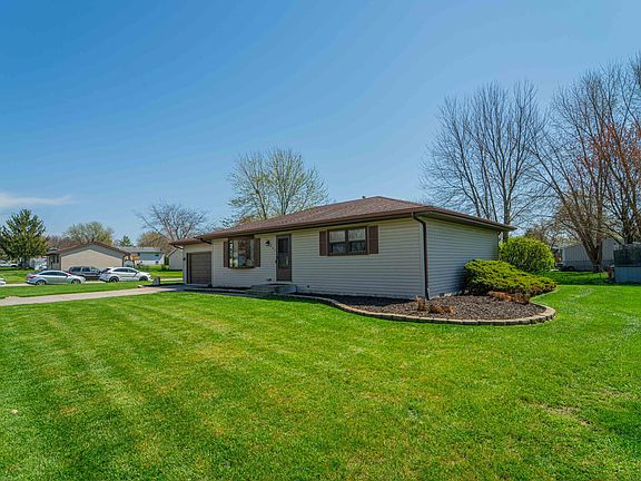 Don't miss this well maintained 2 bed, 2 bath ranch in the heart of Hebron, situated on a corder lot in an established neighborhood! As you walk in, you are greeted by a spacious living room with vinyl flooring and a large bay window that provides tons of natural light. Next is the eat-in kitchen, offering ample room for a table and all appliances stay (even the washer/dryer)! The utility/laundry room is off of the kitchen. It is spacious and features a large utility sink, perfect for pantry space and it makes for great additional functional storage. Down the hallway are two bedrooms and a 3/4 bathroom. The main bedroom is generously sized, has double closets and an en-suite! Both bedrooms had new luxury vinyl flooring installed in 2022. Additional updated include: new hot water heater '22, new dishwasher '23, new garage door '22 and furnace/oversized AC replaced in '16. Located just seconds from shopping, parks and US-231 which offers easy access to I-65 and IN-2.