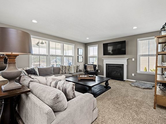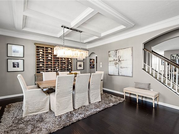 Entertainer's Dream! Spacious office with French Doors &, custom built-ins. Dining room with stunning chandelier! Family room w/gas fireplace, TONS of natural light, open floor plan to kitchen/breakfast area. Kitchen features white cabinets, black granite countertops, SS appliances, double oven, large center island w/seating! Hand scraped engineered ebony hardwood throughout the first floor. French doors from breakfast area lead to the 1st outdoor seating area, complete with gas fire table. Upper Level Boasts perfectly appointed Primary Suite featuring a tray ceiling w/crown detail, massive walk-in closet, bathroom w/ double vanity, raised soaking tub, and oversized shower. Guest bedroom with en-suite bath and walk in closet, 2 additional bedrooms with generous closet space share hall bath. Laundry on upper level. Lower level has it all! FULL bar, Theater Room, Exercise Room, Bonus Room, FULL Bath! Walk out to Additional outdoor spaces, gas fire table, tons of room for entertaining!