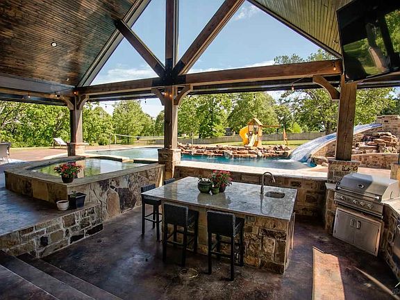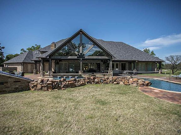 Stunning builder custom you just have to see to believe! This former Parade Home has plenty of room for everyone and the backyard is a paradise built for entertaining. Custom heated pool with mosiac tiled slide and swim up bar seating. Outdoor kitchen complete with stone pizza oven and oversized hot tub under roof. The entire covered patio has remote screens that enclose the area and also allow this to become heated and cooled space to enjoy year round! ELAN smart home system throughout controlling security, audio/video and screens/shades. Wonderful open floor plan with gourmet kitchen outfitted with stainless KitchenAid appliances. Beautiful crown moldings, accented ceilings and upgraded finishes throughout. Three bedrooms (all with private baths) downstairs plus an office, game room with kitchen. Upstairs boasts 3 more bedrooms, 2 baths, bonus room & media room. Sits on 1.6 gorgeous acres in Whitehouse ISD yet minutes from shopping & restaurants in South Tyler. This one has it ALL!