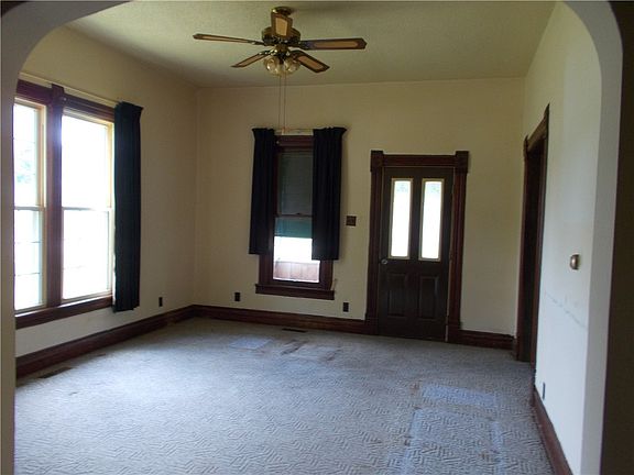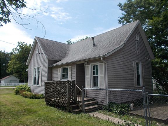 This cozy bungalow sets on a corner lot in the town of Windsor. The home has a living room, kitchen, two bedrooms, and a "Jack and Jill" bath. The home has original ornate wood working in the living room and a set of wood pocket doors to a bedroom. The living room has a rounded doorway and there are wood floors peaking through the carpet. The additional bonus's to the home include a detached two car garage along with a metal 1 car garage for storage and a chain fence around the rear yard. With a little updating this could be a cute home!!!