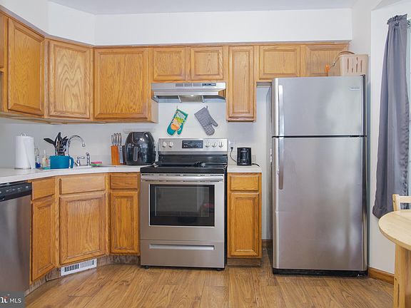 What a great starter home!!! This 3 bedroom 1 and half bath Townhome offers updated stainless steel appliances, new roof (8 months old), new wall to wall carpet in the partially finished basement and upstairs in hallway and bedrooms, new vanity top in the half bathroom as well. Kitchen has a pass through window to the living room dining room combo. The living room area has plenty of space for your furniture and dining room set. The living room also features a sliding glass door that goes out to a deck and fully fenced in backyard. Upstairs you have the convenance of your washer and dryer. The primary bedroom connects to the full bath which also has access from the hallway. You then have your 2nd and 3rd bedrooms. The Basement is partially finished with a nice size family room or kids play room. There is a separate storage room as well.