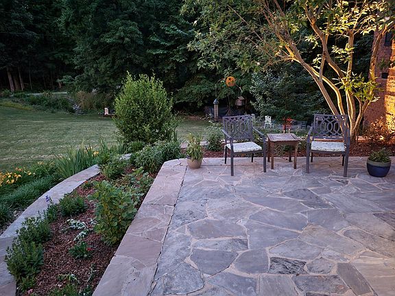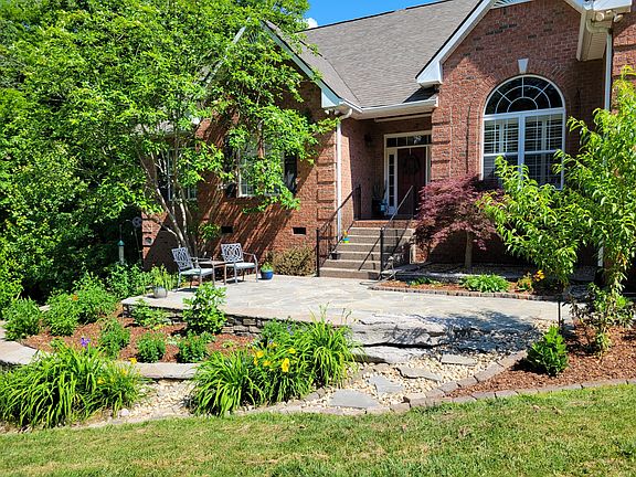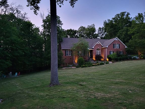 This beautiful home in a peaceful mature neighborhood features 3 primary suites & 2 secondary bedrooms, spacious rooms, walk-in closets, large custom in-ground pool with fountains and a dive rock, gorgeous hardscaped back yard with beautiful landscaping, a firepit by the creek, a storage shed, and up lighting. With 1.63 acres and a 100-year farm behind, the wooded backyard is your own private resort! Inside you'll find hardwood floors, stainless appliances including a double oven and gas cooktop, granite countertops, 2 fireplaces (one wood, one gas), 2 jetted bathtubs, a steam shower, and dual water heaters. Ample storage including floored attic space and a large, lighted, concrete-floored walk-in crawl space. The roof was replaced in 2024, one HVAC system in 2018, and the other two in 2022. Septic system percs for 3br.