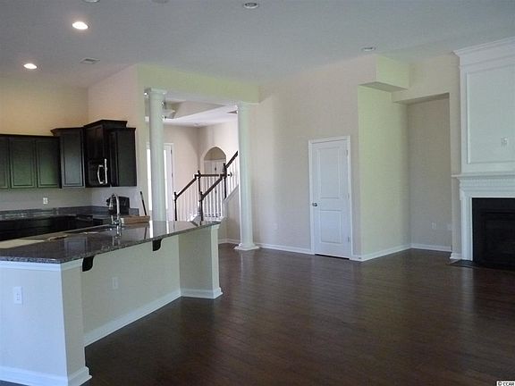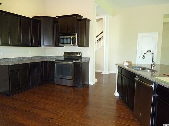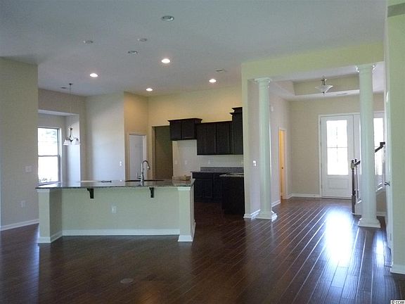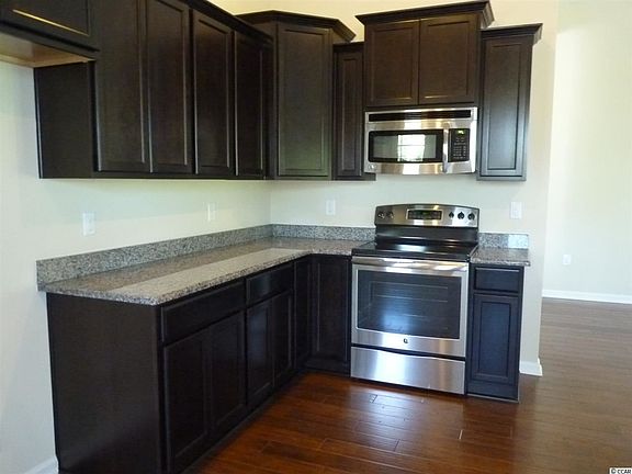 To be built Cumberland J plan. Beautiful, double 8 ft. front doors into welcoming foyer. New kitchen design, open concept with large kitchen island, birch cabinets, granite countertops, stainless steel appliances. This large family room has a fireplace and formal dining area. Owner's suite and two other bedrooms on single level Owner's bath with double bowl vanity, garden tub and shower, spacious walk-in closet. Large four panel sliding doors lead from family room to the covered porch and the backyard borders a conservation area. Incredible home for entertaining! Plenty of room for family and guests. Just minutes to Myrtle Beach by way of International Drive and Grissom Parkway. Grocery stores, medical offices, County recreation center, County library all within 2 miles. Schools are the desirable Carolina Forest District. Our new plans include upgraded design features; level 1 granite countertops, stainless steel appliances, brushed nickel lighting and plumbing fixtures to name a few. Many of the new home-sites will have either a pond or wooded view. Amenities include two swimming pools, clubhouse with fitness room, basketball court and children's playground. Rendering for reference only, pricing and options subject to change during construction. INTERIOR PHOTOS ARE OF ANOTHER CUMBERLAND with hardwood flooring, for reference only.