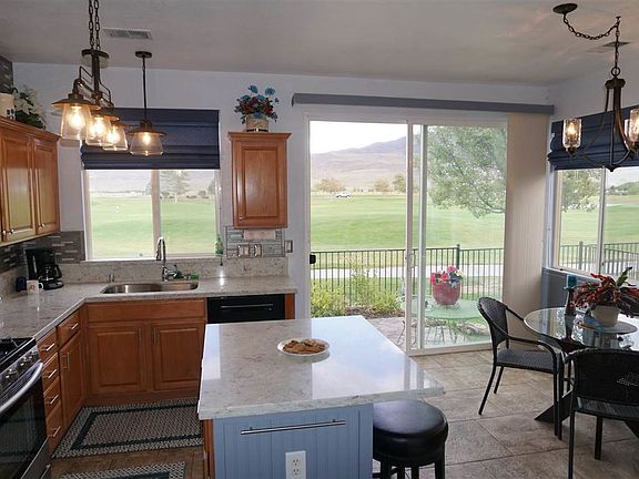 Immaculate home on Dayton Valley Golf Course in gated community. Incredible views of the golf course and mountains. Home has upgrades throughout. Office/den is in addition to the three bedrooms. Generous size kitchen with pantry has Italian Quartz counter tops; stove and Bosch dishwasher are recent upgrades. Gas log fireplace, front and backyards are nicely landscaped with patio area to relax and enjoy the views.