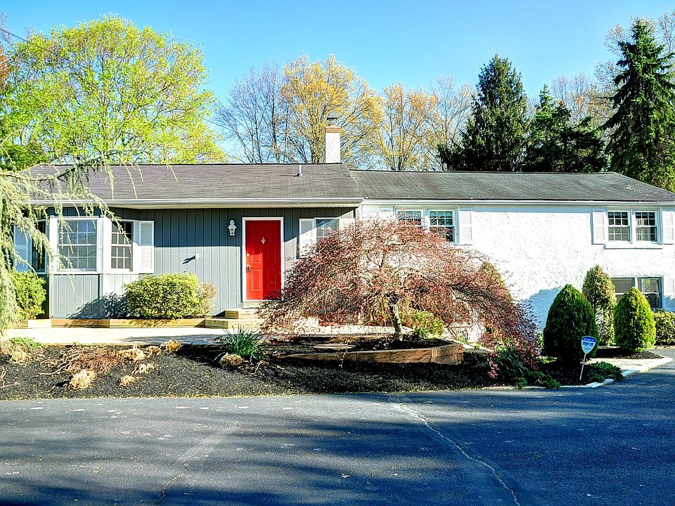 Beautiful Updates set the stage for this Contemporary Split Level Home on a private 1.46 acre lot in Hilltown Township. Upon arrival, you will notice not only the New Roof, Gutters and Siding but also the care and attention that was put into the exterior of the home with the mature landscaping and driveway parking for multiple vehicles. The front flagstone patio provides a perfect entry into the foyer with double door coat closet and gorgeous wood design laminate flooring throughout. The open concept living room, kitchen, and dining room, complete with skylights on a vaulted ceiling. The open dining room and kitchen with breakfast bar seating was updated with granite counters, and tile back-splash. Enjoy the serenity of your private surroundings from the wall-to-wall windows in the fabulous Sun-room with 10 person Jacuzzi Hot Tub. An updated powder room with granite counters and tile accents completes the main level. A few steps up from the living area you will find three spacious bedrooms and 3 hall closets. The master bedroom includes a walk-in closet and adjacent office space with door to deck and patio over-looking backyard. The hall bath with a skylight was beautifully updated with all new fixtures, flooring and wainscoting. Downstairs the family room features a wood plank ceiling, flue pipe for wood stove, and access door to driveway, as well as the 4th bedroom with two closets. Close to Shopping, restaurants and Colmar train station. Award winning Pennridge School District. LOW taxes. Two Sheds for additional storage. Make your appointment to see this immaculately maintained contemporary home today!