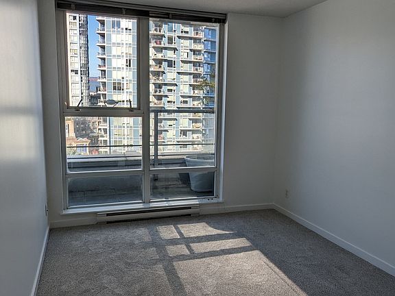 Downtown Vancouver by the Stadium, Spectrum 4 by Concord Pacific. The unit is on the 5th floor with approximately 630 sf. It includes one bedroom and a bright glass solarium, which can serve as an ideal office space. The living area is spacious and well-designed. The bedroom can accommodate a King Size or Queen Size bed along with a dressing table. The unit also features an extra-large storage room (which can be used as another office). Parking is not included. If a parking stall is needed, please inquire with the property management to post an advertisement within the community. Parking rates are approximately ~$150 per month. The strata has its own amenity called Club O-zone, including an indoor swimming pool, hot tub, sauna, steam room, fitness center, rooftop garden with a barbecue area, lounge, and party room. The surrounding community boasts a convenient geographic location and amenities. It is just 1-minute walk away from Expo Line Stadium-Chinatown Station and a 13-minute work to Canada Line Vancouver City Centre Station. Major community amenities within 10 minutes walk include hundreds of restaurant International Village Mall, Costco Wholesale, T&T supermarket, Vancouver Central Public Library, Queen Elizabeth Theatre, Rogers Arena, BC Place Stadium, Livingstone Park & Field, Creekside Park, and Cooper's Park/False Creek waterfront area, among other convenient facilities. There are also several commercial districts with vibes nearby, including Robson St, Gastown, Yaletown, Granville St. For transportation, Evo car-sharing is just across the street on Beatty St, and Enterprise Rent A Car service is only a 4-minute walk away. To ensure the new tenant's living quality, we have replaced the dishwasher, microwave, and range hood before your move-in, updated the bathroom faucets, installed brand-new bedroom carpets, and conducted a deep cleaning. This apartment is perfect for working professionals, students, or small families (maximum of 3 people per unit as per Strata Bylaw 43 (1)). No smoking/e-cigarettes/recreational drug use (Strata Bylaw Division 1 (4)), no short-term rentals (Strata Bylaw Division 1 (5)), minimum one-year lease, and subletting is not allowed. Long-term tenants are preferred. Enjoy the new flooring in the living room and newly renovated bathroom! Contact us to arrange a viewing this Saturday (August 23rd)!