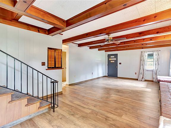 Enter this split level home through the Spacious Den with Wood Ceiling Beams and Gas Log Fireplace. Off of this Den is an additional space that can be used as a 4th bedroom or office. This 4BR/2BA split level home is located in the Concord, McCants, and TL Hanna school district! This wonderful home welcomes you with spacious living room featuring a large window allowing tons of natural light with a wood burning fireplace. The original hardwood floors are in place and is also in upstairs bedrooms underneath carpet. A formal dining room sits just past the living room with a pass through window to the kitchen. Located Upstairs you will find three bedrooms to include the master bedroom. Bedrooms are spacious and offer large closets with additional storage spaces and cubbies throughout the home. This home is situated on a corner lot with fenced back yard where you can sit on the upper or lower covered porch and enjoy the outdoor space. 2 storage buildings that will pass with the sale. Enjoy sitting out back while gathering around the fire pit.