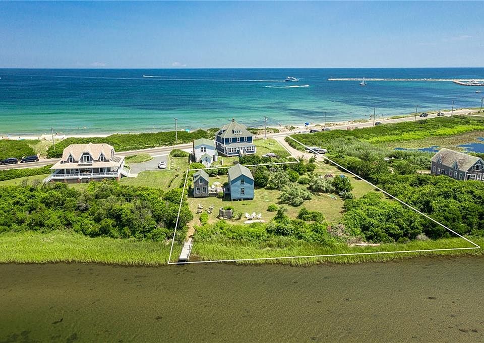 Nestled between the lapping waves of the Atlantic Ocean and the serenity of Harbor Pond, this lovingly maintained beach retreat is a testament to the ease and authenticity of Block Island. Tucked away from the road, this distinctive 3-season home features a kitchen, living room, and bathroom on the first floor, with 2 bedrooms above. An adjoining studio with a loft yields more space to live, create, or store in this water-lovers sanctuary. Steps from the house, a private deeded dock awaits endless adventure, with the possibility to clam, kayak, paddleboard, and swim in the salt pond. With nearly an acre of land, native plants and characteristic stonewalls add privacy to the lot. The close proximity to town and the best swimming beaches on Block Island further amplifies the location. Year after year, watch the tides ebb and flow as summer memories fill this beach house with everything this haven offers. As the sunsets blaze over Harbor Pond and the lull of the ocean waves whispers through every window, you will truly be at home on Block Island, in a house that is like no other. This coveted jewel, with its curated aesthetic and breathtaking vistas, is a rare opportunity not to be missed.