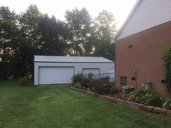 Brick ranch with three bedrooms and 2 baths Large great room with tile in kitchen and dining with wood floors in great room and hall. Great room has fireplace with gas logs attached two car garage. Large 30x40 pole barn fenced back yard with koi pond features waterfalls and covered patio and rear deck