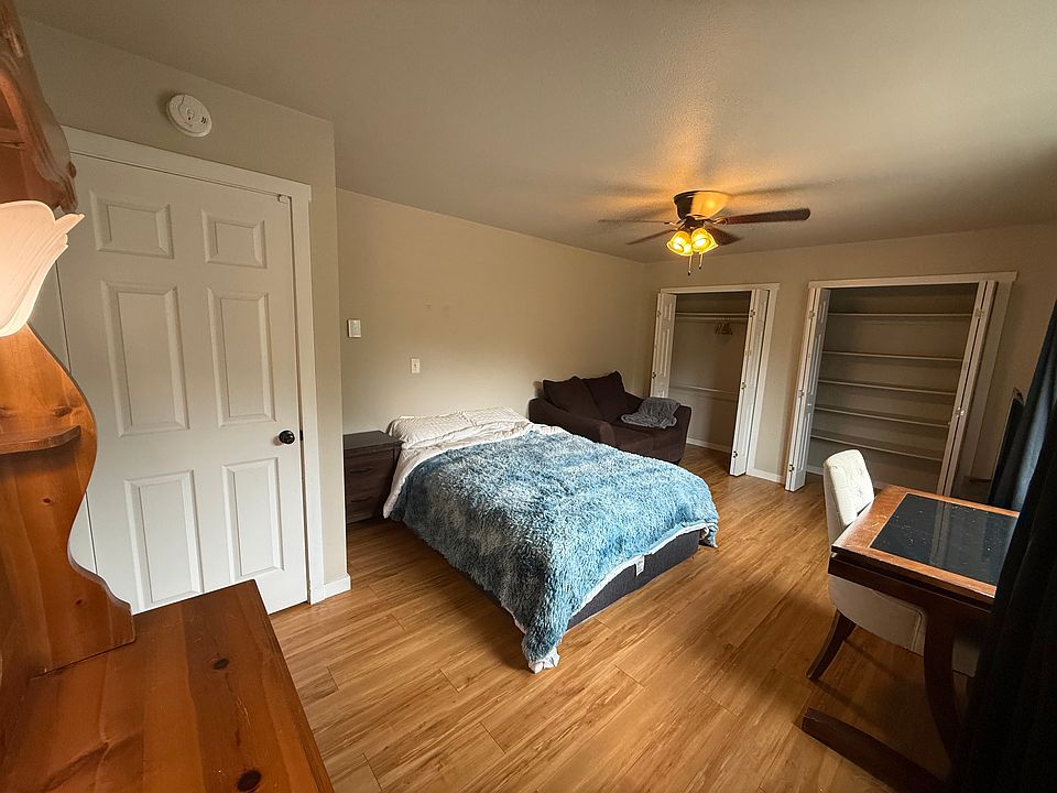 Bright, spacious private and furnished room with sweeping views of Cheyenne Mountain and nearby nature trails. Located just 5 minutes from Downtown Colorado Springs, The Broadmoor, Cheyenne Mountain State Park, Quail Lake, and Fort Carson. The room is part of a welcoming home with full access to the shared living room, den, kitchen, laundry, powder room, and bathroom. Enjoy a large backyard - perfect for relaxing after a day of exploring. Rent includes all utilities and shared Wi-Fi. Pet-friendly terms available. Month to Month lease with flexibility for longer stays. No smoking inside the home. Street and driveway parking available. Pets considered with prior approval. Rent includes utilities and Wi-Fi. Tenants are expected to help keep shared spaces clean.