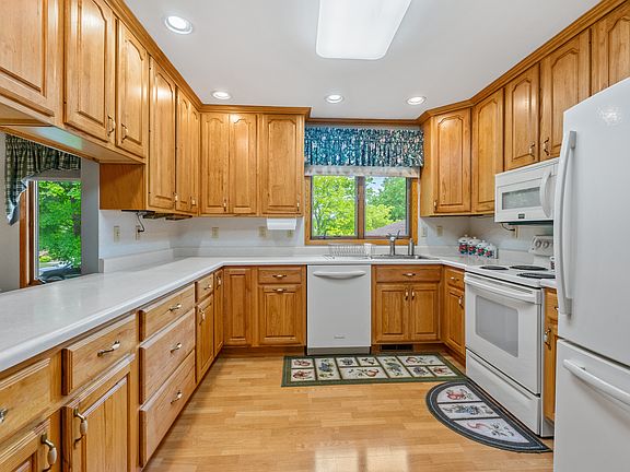 Say YES to this Address, but, do it quickly! This meticulously maintained custom home is ready for new owners. The split level design offers so much room for large gatherings or finding your own quiet space. The Kitchen is designed with 41 inch hickory cabinets, pullout drawers and lazy susan, eating space with a desk space and then opens to the all season sunroom. There is a living and dining room combined space, 3 bedrooms and 2 bathrooms that round out the upstairs. Head down stairs to the massive laundry, utility room, 2 additional bedroom/offices spaces, full bath and spacious family room with a woodburning fireplace and exterior door. The list of unexpected extras begins with leaf guards all the way around gutters, composite deck off of sunroom, cedar closet, toolshed with electricity, enclosed storage under sunroom with electricity and concrete floor, epoxy floor in garage, whole house Kohler generator, mature fruit trees, perennial gardens galore, and a fantastic vegetable garden. Garbage disposal replaced in 2024, water heater 2021, roof 15 years old.