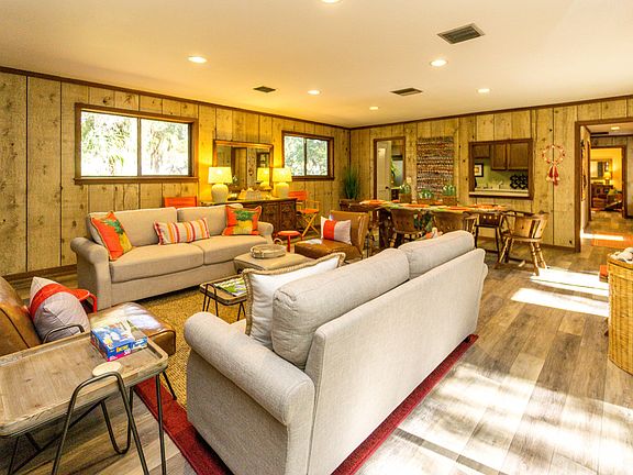 What a GEM! Just 200 steps to beach access! Tucked away under live oaks on oversized lot .... this classic beach house is in excellent condition inside and out! Enjoy listening to the ocean from the comfort of your screened porch. Offering separate entrance one-bedroom apartment with fireplace and fully updated. Primary home is totally separate offering four bedrooms and three baths ... perfect for rental income, second home or primary residence. Separate kitchenette and eating area on lower level. New roof, freshly painted, easy maintenance vinyl flooring, two hot water heaters and three HVAC units, new in 2017. It is apparent this property has been well maintained and waiting for the lucky buyer to come along. Home has never been rented - rental projection in Docs.