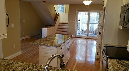 MASSIVE EASTSIDE DUPLEX WITH DEEDED PARKING! VERY RARE AND SUNNY!!!WELL MAINTAINED FOUR BEDROOMS TOWNHOME WITH FOUR LEVELS OF LIVING SPACE WITH GARAGE PARKING. BEAUTIFULLY UPDATED SPACIOUS KITCHEN WITH GRANITE COUNTERS AND STAINLESS STEEL APPLIANCES, LARGE FAMILY ROOM ON THE FIRST FLOOR WITH HARDWOOD FLOORS,SECOND FLOOR HAS AN OPEN CONCEPT LIVING ROOM , STUNNING KITCHEN, DINING ROOM, HALF BATHROOM, FRONT AND REAR DECKS WITH VIEWS OF BOSTON SKYLINE,THIRD FLOOR HAS THREE BEDROOMS INCLUDING A MASTER BEDROOM WITH A CERAMIC TILED BATHROOM . FOURTH FLOOR HAS A MASTER SUITE FOURTH BEDROOM WITH A MARBLE TILED PRIVATE BATHROOM !CONVENIENT TO DOWNTOWN BOSTON, AND PUBLIC TRANSPORTATION .FIRST FLOOR- GARAGE & LAUNDRY RM.. JUST MOMENTS TO BEACH, RESTAURANTS, PUBLIC TRANS, AND SHOPS.