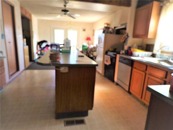 2 bedroom home with 1 1/2 baths spacious kitchen with center island and ample cabinets, dining room off kitchen with patio doors leading into a large back yard that is fenced. Extra large shop with 2 big doors and 1056 sq. ft. 3 sided shed and an old bungalow which can be used for storage. This all sets on 2 lots with lots of room for garden or just a large play area for children. This home has a large attic with 291 sq. ft.
