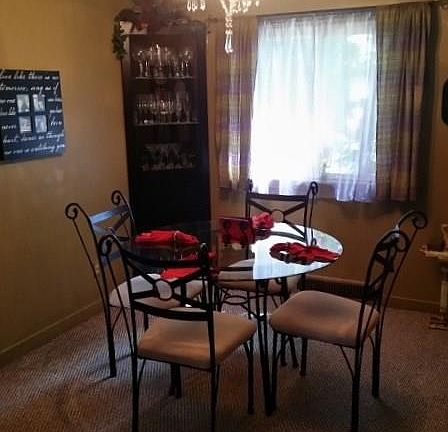 Fun, funky doll house! Character, colorful and cozy too...2-3 bedrooms, terrific location, full basement, newly painted basement floors, private deck and fenced pet area. Lot is park like, pool area, two car garage and appliances too. Shows well! Rural Development ready!