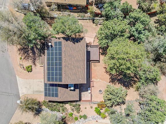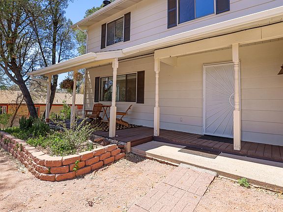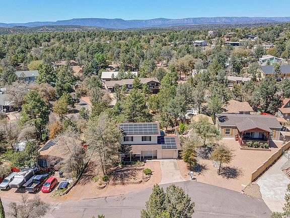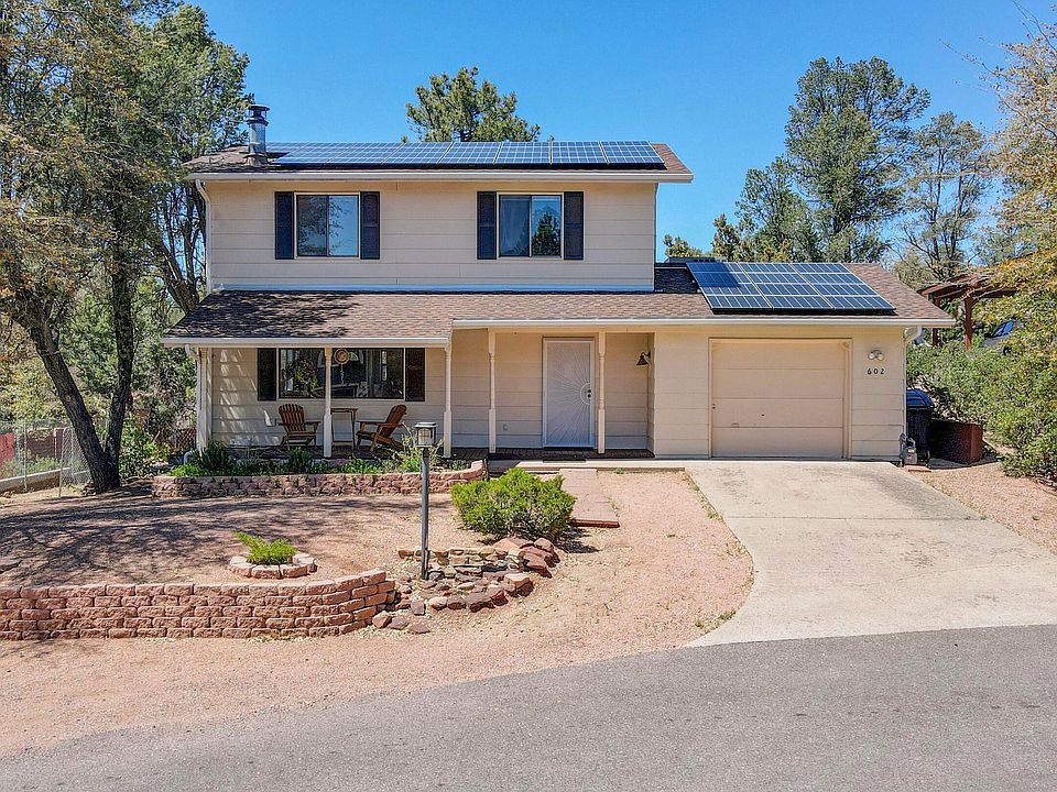 Move-in ready, two story home on cul-de-sac. Home has 1344sf, two bedrooms, 1.5BA and a 308sf, one car garage. Layout on lower level has beautiful vinyl wood plank flooring, rock fireplace that is woodburning. Kitchen has electric range, almost new dishwasher and microwave. Laundry hook-ups are in the extended length garage. Upstairs is a loft that can be utilized as additional sleeping space. Main bedroom has walk-in closet and bathroom with walk-in shower. Yard is landscaped with tall pine trees. Front porch is covered and there is a deck at back of home. Firepit, shed and spacious fenced backyard. RV parking with gate. Roof is one year old and solar panels are paid in full! No HOA.