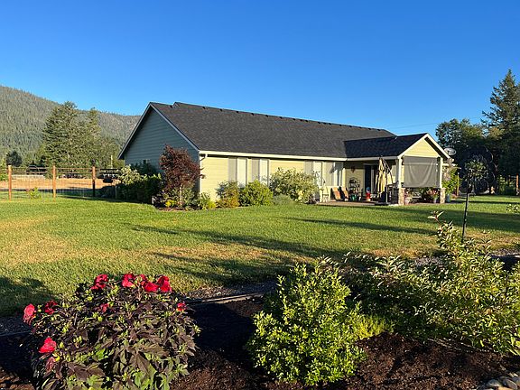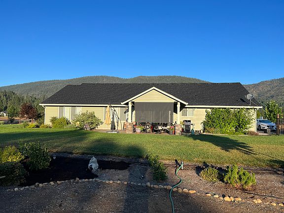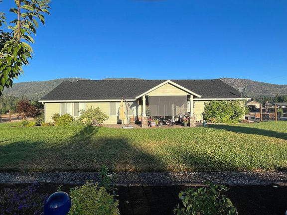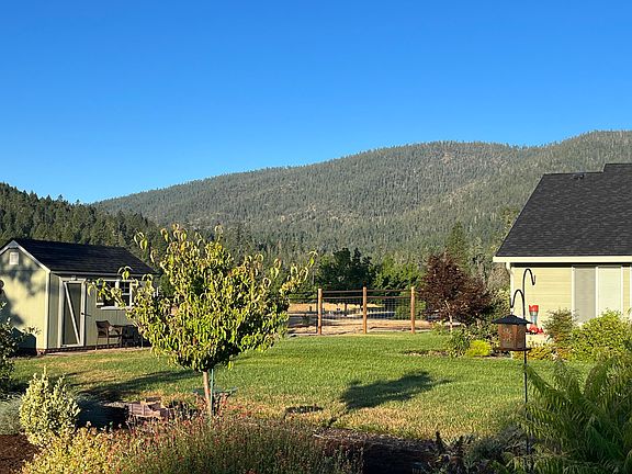Sellers are MOTIVATED! A beautifully landscaped 3-bedroom 2-bath + den home on 1.18 acres, open floor plan with vaulted ceiling in living and kitchen, built in speakers, a 2-car garage+ shop with custom flooring and high-end storage cabinets. Bocce ball court, lighted and covered stamped concrete patio, 8x14 shed with power and a patio, RV parking area with hook-ups. Yard completely landscape with inground sprinklers and a drip system. Fully fenced backyard. Mature fruit trees raised garden beds. Oversized master with walk-in closet. Walk up attic in garage for lots of storage. There is river access from the neighborhood, trail to Illinois River in a gated community, scenic view of the mountains at the front door facing west, in a quiet and peaceful setting. Owner is a licensed broker in Oregon
