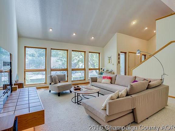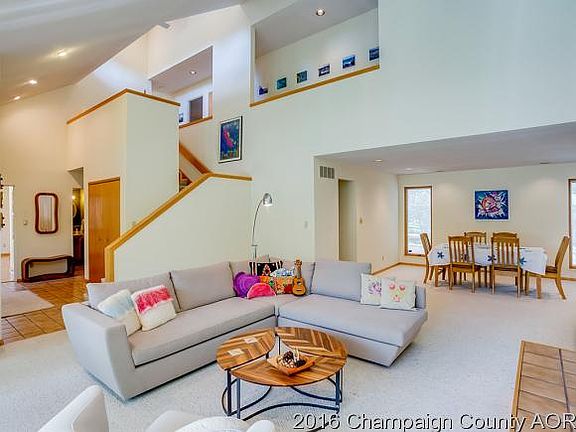 Amazing floor plan with soaring ceilings. This extremely spacious and bright contemporary floor plan has so much to offer. 5 bedrooms, 2.5 bathrooms, second story laundry room, multiple skylights, fireplace, and a large finished basement. The first floor bedroom is so large, the current owners are using it as a living room. Tons of unique details in this custom built, 2 owner home including a study nook, walk in closets, ample storage, gardening shed, and a freshly refinished deck. Updated mechanicals and roof. Situated centrally in Urbana on a low traffic cul-de-sac with a 2 car garage. Very high quality windows throughout with self-contained blinds.