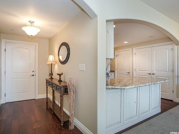 Refined Senior Living in North Salt Lake! This spacious mid-level condo features spectaular views of the valley and mountians from the covered deck. Open concept floor plan with decorative archways, French-country inspired cabinetry, granite counters, gas range, brushed-nickle light fixtures, his-n-her sinks in master bath, laundry in the unit, secured building and underground parking. Clubhouse with excercise room, theater room and in-ground heated pool. Call to show / access code.