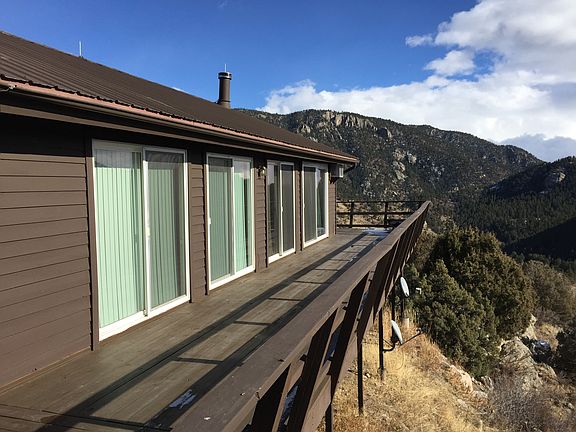 Enjoy wide open, mountain peak & canyon views throughout this year around hillside Cabin with amenities that include a hot tub, sauna, wrap around decks, wood stoves, & a fireplace. Recently updated kitchen and wood floors. Meditation/Yoga Platform located on the bluff. Easy access to Glen Haven, Estes Park, and & Loveland.