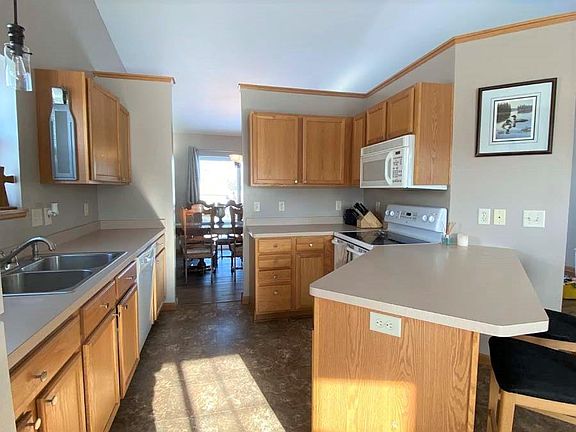 5 bedroom, 3 bath home features vaulted ceilings, luxury vinyl plank flooring, 3 bedrooms on one level including a master with full private bath, eat-in kitchen nook and separate dining, finished walk-out lower level, 3 car garage, storage shed. Needs light TLC.