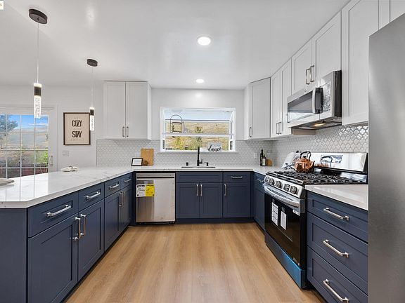 North Hills Living at Its Finest!Perched at the top of Vallejo’s desirable North Hills, this beautifully upgraded home blends modern style with everyday comfort. Nearly everything has been refreshed inside and out! Fresh paint sets the stage as you step inside to find new flooring, sleek kitchen cabinets, sparkling appliances, and updated electrical in the kitchen and baths. Enjoy stylish lighting, ceramic tile, and renovated bathrooms with new toilets, vanities, and mirrors. The living room features a modern electric fireplace, converted from gas for a clean, cozy vibe. From inside the kitchen, look through your garden window and daydream while doing dishes, escaping into the rolling hills, a daily reminder of the beauty around you. Out back, a rare double deck offers sweeping mountain and hill views with no rear neighbors, perfect for entertaining or relaxing under the stars. A new front lawn and updated sprinklers add curb appeal, while upgrades like new plumbing, water heater, A/C system, sub-panel, and smart alarm system provide peace of mind. The master shines with a fresh textured ceiling, while details from baseboards to door updates make this home truly move-in ready. Nestled in a quiet hillside community, it offers privacy, views, and the perfect blend of tranquility.