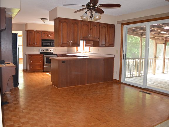 This House will have all new main floor and upstairs flooring prior to move in. The main floor features a spacious lay out and includes, family room, living room, dining room, breakfast room, half bath, kitchen and laundry. The breakfast room has a large glass sliding door that leads out to a large deck and screened in porch. The living room has a gas fire place and the family room features a wood burning stove. Up Stairs a large master bedroom has two walk in closets and a master bath that has been newly remodeled. Three more bedrooms are off the upstairs hall way and an additional full bath. The southern most bedroom attaches a rec room above the garage. The basement is set up as a mother in law suite, either pull the curtains to divide off a bedroom areas or leave them back for a very spacious rec room. The basement will also feature a full kitchen, full bath, and walk out patio. The large wooded lot is very private and features a large play structure. Lawn care and snow removal are taken care of by the owner. Must have a minimum credit score of 650.