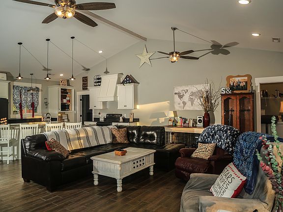 This spacious 2020 custom build features a modern farmhouse design. As you enter the driveway this beauty is sitting on 1 acre of privacy that says, “YOU ARE HOME.” Enjoy this lovely home offering 1589 sq ft of spacious living. Dinner nights allow conversation with friends and family along the 10.5 ft granite island with an open concept. The craftsman décor is stunning including stainless appliances, shaker style cabinets, barndoor, and lots of natural light. The vaulted living room ceiling provides this home with a grand entrance. The flooring throughout is porcelain tile. This home boasts of large bedrooms. The primary bedroom has access to the laundry, closet and primary bath for ease. The additional 2 bedrooms are located on the opposite side along with a nice full.bath offering granite vanities. Enjoy evenings on the covered front or back porch offering a peaceful view. The large, attached garage measuring 32x24 has a floored attic.