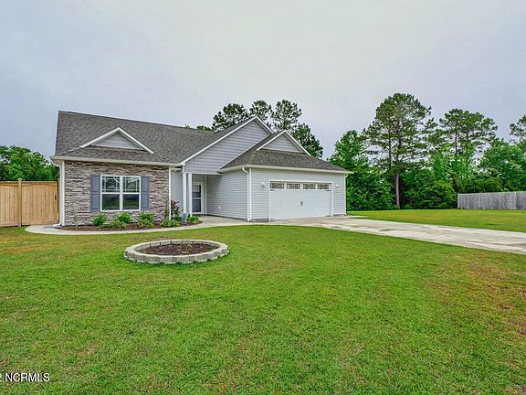 Beautiful home on a large cul-de-sac lot in Bridgeport. This 3 bedroom open floor plan flows wonderfully. Several upgrades including wrap around sidewalks, security lighting, and energy efficient windows set this home apart when compared to other homes in the neighborhood. Meticulously kept, this home keeps you close to the beach and centrally located for work in Jacksonville or Wilmington. Come see this beautiful home and make it yours.