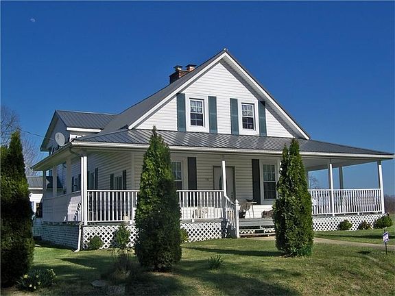 Updated Farm Home with a wrap around porch positioned on 55 acres in Venango County - Irwin Twp. First floor living options and updated stone fireplace located in the center of the home. Enjoy the wood burner family/living room areas. Home features include - Security System, updated 200 AMP Service, Cistern to home City Water System, Hardwood Flooring, New Steps to the 2nd floor. Roof replaced in 2012. Barn and out buildings have been freshly painted and restored during their ownership.
