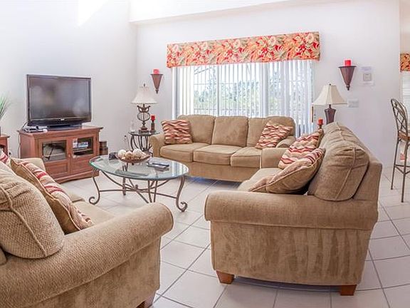 Stunning 5 bedroom 3 bathroom with 2 additional half bathrooms - 1 outside for pool access in popular community of Highgate Park. Home comes fully furnished with private south facing pool and large pool deck for sunbathing and entertaining. Gated community and approximately 10 minutes to the world famous attractions, shopping, golf, restaurants and so much more. Home has owner bookings to convey and comes fully turn key.