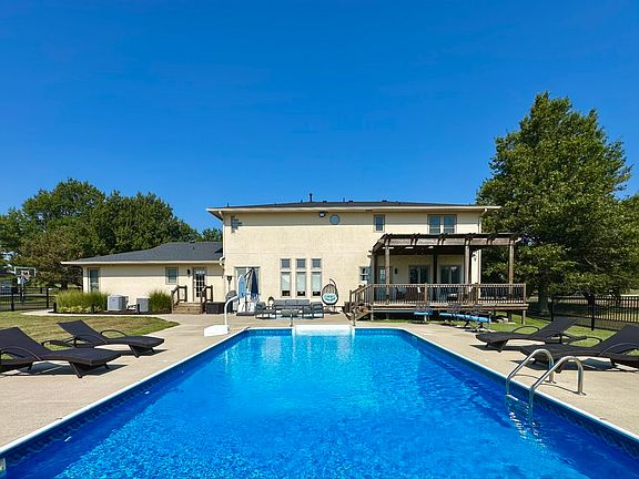 Welcome to this stunning home located in a highly desirable neighborhood, just a stones throw away from the golf course. With almost 4000 sq ft of finished interior space, heated pool, and 1.5 acres, this home is designed for both family living and entertaining. The main floor welcomes you with a large foyer. An eat-in kitchen provides a cozy spot for everyday meals, while the formal dining room sets the scene for dinner parties. The living room flows seamlessly into the family room, creating space for both relaxation and social gatherings. The current office could also be a fifth bedroom, making it ideal for work or guests. A wide staircase leads you to the second floor, where youll find four generously sized bedrooms and three well-appointed bathrooms. The master suite is a true retreat, complete with a modern bathroom designed for comfort. The finished basement is a haven for unwinding, featuring a built-in steel storm shelter for added peace of mind. Theres also an unfinished portion with a utility sink and plenty of space for storage. Step outside to your personal oasis a deck offers a perfect spot for outdoor dining, while the patio seating area and heated inground pool provide everything you need to enjoy the summer days. For additional convenience, the property includes an extra two-car garage and a home backup generator, ensuring youre always prepared. This large, comfortable home is designed to create memories for years to come.