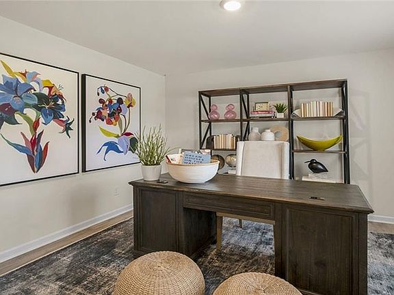 The Galen is a spacious two-story home offering 2,340 sq. ft. of living space, 4 bedrooms, 2.5 bathrooms, and a 2-car garage. The moment you step inside the home you will be greeted by the foyer which connects you first past the flex room, and then past the powder room and a storage closet. The foyer then opens into the large great room, overlooked by the kitchen. The open-concept layout integrates the great room with the kitchen, featuring stainless steel appliances, spacious center island, and a corner walk-in pantry.Upstairs, there is the primary bedroom with a private bathroom, dual vanity, and a separate water closet for privacy. The primary bedroom sits at the front of the home on this floor and features a walk-in closet. The additional three bedrooms provide comfort and privacy with access to a full secondary bathroom. The laundry room completes the second floor. With its thoughtful design and spacious layout, the Galen is the perfect place to call home