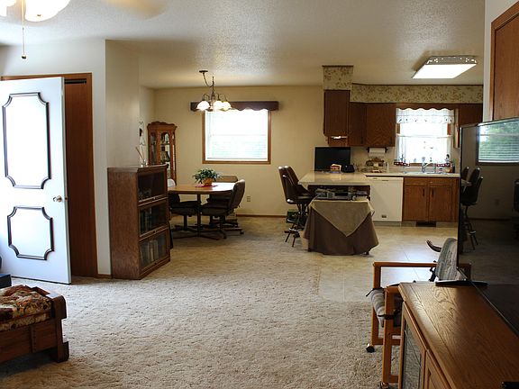 This open concept 2464 square foot home with a steel roof on a corner lot in Eureka SD is ready for a new owner! As you enter from the attached two stall garage, you'll find an open kitchen, living and dining room area. There are two bedrooms and a full bathroom at the other end of the living area. Also off the garage is a ½ bath and laundry room. In the basement you'll find another large family room space, a third bedroom (no egress) and a full bathroom, a storage area and a utility room with space to make a fourth bedroom if desired. The yard includes concrete landscape edging around the house and rock gardens.