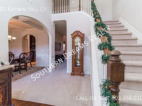 Welcome to 602 Kaymin Hill Court! This spacious 5-bedroom home is move-in ready, boasting a beautiful 2-story foyer and an inviting open floor plan. Entertain effortlessly in the generously sized living and dining areas. The kitchen shines with recently updated stainless steel appliances. A main floor bedroom and full bath offer versatile options for guests, in-laws, or a home office. Upstairs, discover 4 additional bedrooms, including a master retreat with vaulted ceilings and a cozy sitting area perfect for another home office or workout space. Outside, enjoy a large fenced yard, extended covered patio, and the convenience of dual Husqvarna automatic lawnmowers. With easy access to I-20, Michelin, US Foods, and top-rated Lexington 1 schools, this home offers both comfort and convenience None