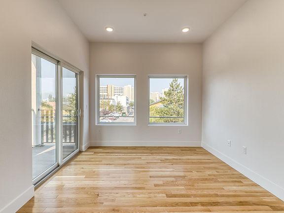 Live in a newly constructed, sustainable, mixed use building. Available 10/1/2022. This apartment includes one space in the parking garage. Excellent light and views of mountains and downtown. Great location - 1 block from the Truckee River. Several blocks from restaurants, 10 Torr Brewery, grocery stores, coffee shops, etc. Washer/dryer in each apartment. Air conditioning. Solid hardwood floors. Energy Star, stainless steel appliances. Integrated air filter in each apartment. Fiber internet available from AT&T. Charter also available. Near Midtown, UNR, Wells Avenue, downtown, Renown. Garage storage unit. Local ownership and management. Owner pays water, sewer, garbage, and recycling. Tenant pays electricity and internet. Credit check fee of $35. Pets allowed: liability insurance required for dogs. Lease length: 6 months, 9 months, or 12 months.
