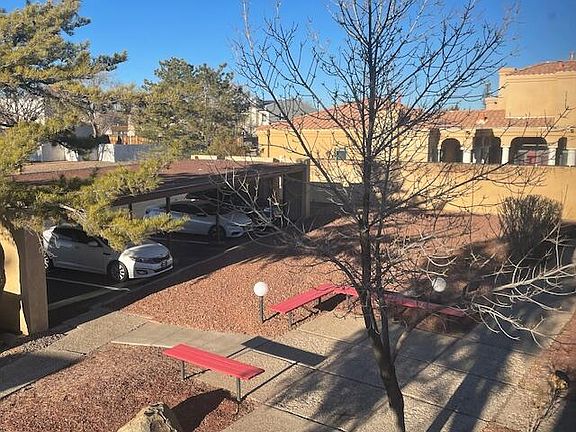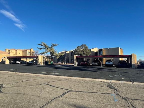 Available Now! Incredible opportunity to own this amazing well-maintained condo which backs up to what was the Rio Rancho golf course. This upper floor unit features 2 spacious bedrooms with a walk-in closet in the MB. The open floor plan has a living room/dining room combo that leads out to the balcony where you can enjoy the beautiful views of the Sandia mountains. It has newer vinyl plank flooring, plus REFRIGERATED air. Includes a covered parking space, and the HOA covers your water/sewer, trash, and recycling. This is an amazing and affordable property for someone to become a homeowner or for an investor looking for investment property. Low maintenance. This is a must see and will not last long.