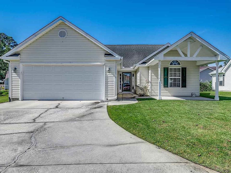 Welcome to the remarkable community known as Island Green. This 3 bedroom, 2 bathroom home offers a quaint and simplistic HOLLY floorplan. One of few! It will be quick to go! Sitting on a cul-de-sac with a great front and back yard space. In addition - front porch and rear porch space with a sizable driveway. Entering the home you walk into the foyer space opening you up to vaulted ceilings in the common living space. The living and dining space are open concept. A breakfast bar overlooking the full kitchen with appliances throughout with washer and dryer. The master bedroom being an attractive space has vaulted ceilings with the perfect master set up. The well-kept home is in great condition throughout the home. 20x20 - 2-car garage space. The back patio is screened in with an additional patio, a great space for seating! Small monthly HOA fees!! Only minutes from main attractions off-of 707, and HWY 31.