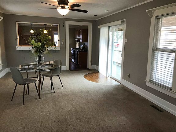 Fantastic location & charming home w loads of character, space, sunlight, and great updates. Front porch opens to living rm w wood floors, fireplace, seating alcove. Huge dining area could also be fam rm, office, library? Spacious kitchen w/ eating bar, newer appliances, fixtures, sink. Main BR has 2 closets, built-ins; 2nd BR upstairs has its own loft area. Laundry & bath at back of house; bathrm has been nicely updated too. Huge covered porch running the length of home inside fenced back yard; wood deck between house & shop bldg; private parking pad at rear. Cellar access from side porch, houses equipment & provides storage. Right next to city park, minutes' walk to restaurants, shopping, city pool, etc. Pre-listing inspections are on MLS; home will be sold AS IS.