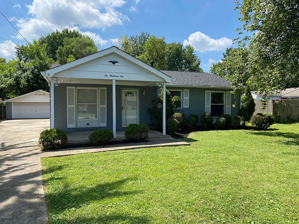 This spacious home has new HVAC inside and out, a new roof, new water heater, new carpet in half of the house, new french door (back) with built in blinds, and some new paint. The detached 2.5 car garage has a new roof and numerous power outlets all around the inside. The beautiful eat-in kitchen has a lot of counter space. Fresh landscaping and a new mailbox. Large back yard and lots of parking room for guests. There is also a transferrable pest spray account (3 sprays left) included. This conveniently located house is right off of the Gene Snyder Freeway and unlike most other homes in the surrounding area. It has an addition with a large master bedroom with a walk-in closet and en suite. The addition also adds a laundry room and another large living space with a woodburning