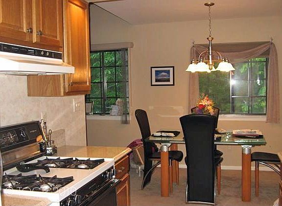 FABULOUS, UPDATED DICKINSON MODEL TOWNHOUSE WITH CORNER LOCATION OVERLOOKING A PRIVATE WOODED SETTING. TASTEFULLY DECORATED, MOVE-IN CONDITION; BRIGHT LIVING ROOM WITH VAULTED CEILING AND WOOD-BURNING FIREPLACE; SLIDING DOOR TO DECK; DINING AREA; NEWLY TILED KITCHEN WITH NEW STAINLESS APPLIANCES. LAUNDRY; MASTER BEDROOM WITH LARGE CLOSET; UPDATED TILED BATH WITH SHOWER OVER TUB. SECOND FLOOR, MASTER SIZED, PRIVATE BEDROOM AND ANOTHER TILED BATH. MAINTENANCE INCLUDES WATER, EXTERIOR COMMON AREA, POOL, TENNIS; DESIRABLE RIDGE GARDENS IS A PET FRIENDLY COMPLEX. FABULOUS LOCATION, CLOSE TO SCHOOL, SHOPPING, LIBRARY. MOVE-IN CONDITION; WON'T LAST!