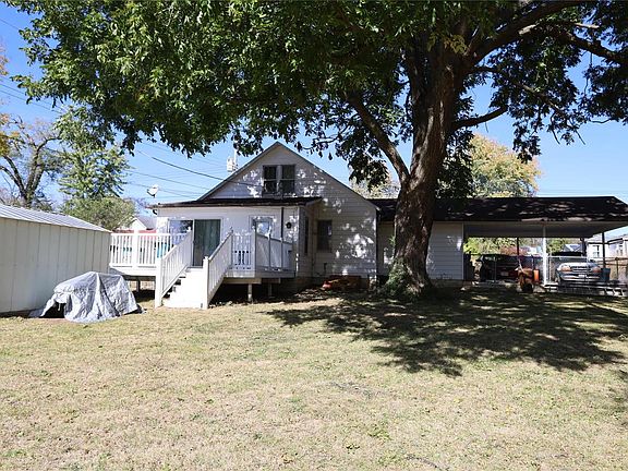 This charming 1.5-story home sits on a large corner lot with a fenced-in area for pets. In the backyard, you'll find a massive pecan tree for shade and beauty. Very rare find in this area! Inside the home, you'll find a large living room, an eat-in kitchen, main floor laundry, and a master bedroom with a full bath. There are two spacious bedrooms upstairs that are open to each other and you could use one of the bedrooms as a family room. The back deck is large enough for a family get-together, and in the backyard, you'll find a storage shed for all those extra tools. The home has a cellar for access underneath the home. There is a large covered carport for all your vehicles and bikes.