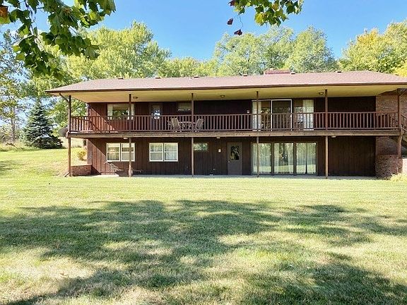 You can see for miles atop the hill where this amazing home sits on 6 acres! Home was built in 1967 and is solid! The 1800 sq ft main floor boasts a large kitchen and dining area, spacious front entry, three generous bedrooms, full bath and 3/4 master bath. BUT the view from the huge living room is what you can't walk away from! Lower level boasts an entertaining family room w/walk out, two bedrooms, a 3/4 bath and so much storage space. This property is an amazing place To call home! City water/septic